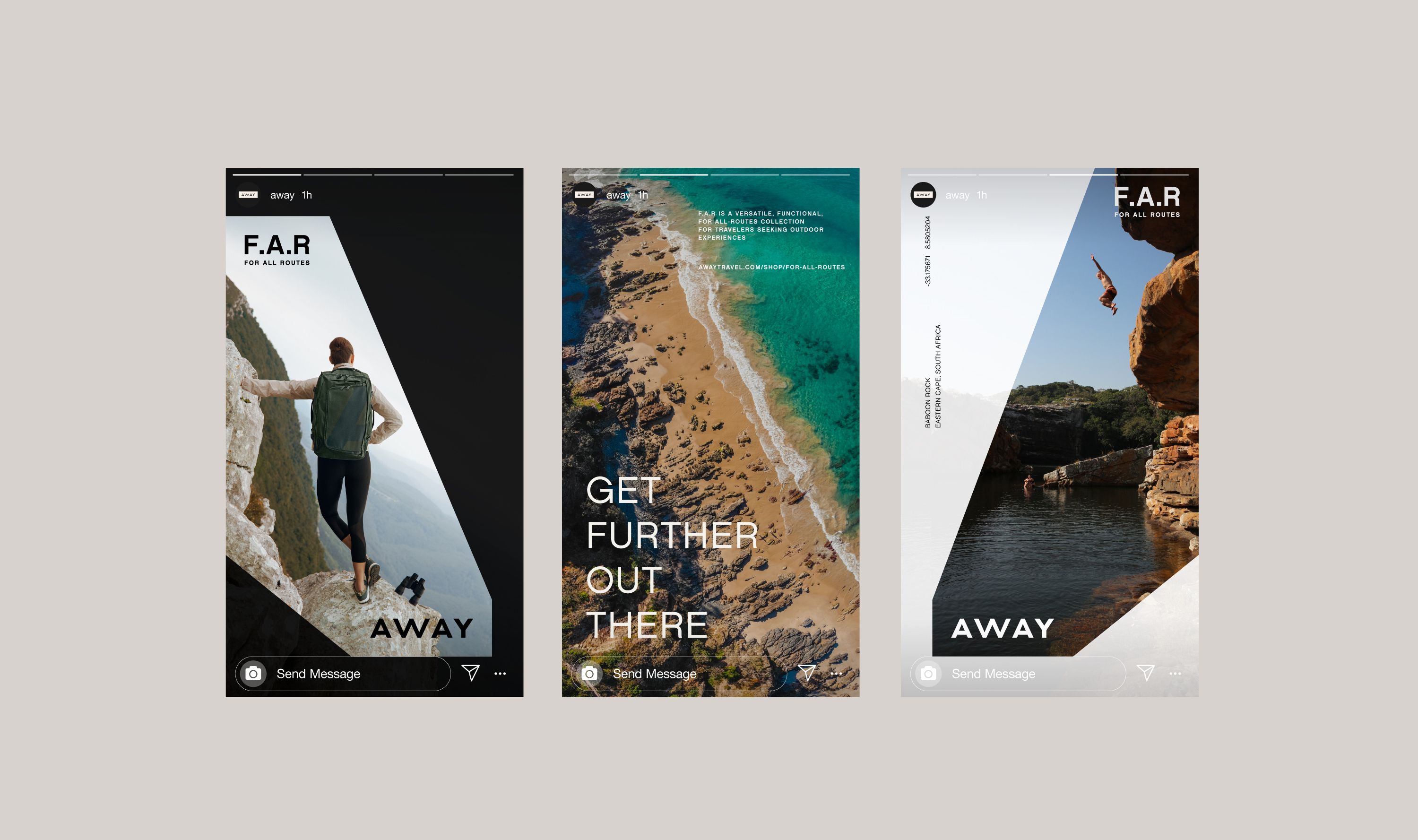 To develop a brand system for their new outdoor collection, travel darlings Away came to Michael's team for an outsider’s perspective. Although best known for its now ubiquitous, rigid rectangular suitcases, this brand extension, dubbed F.A.R., would focus on flexibility.
